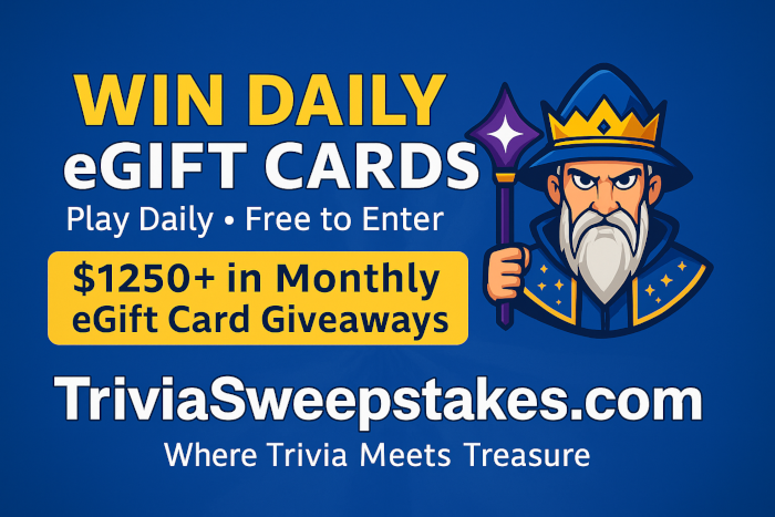 Expires: 12/31/2025TriviaSweepstakes.com – Where Trivia Meets Treasure! Who said you need to be on a TV show to win real cash prizes playing Trivia? Put your knowledge to the test and ...