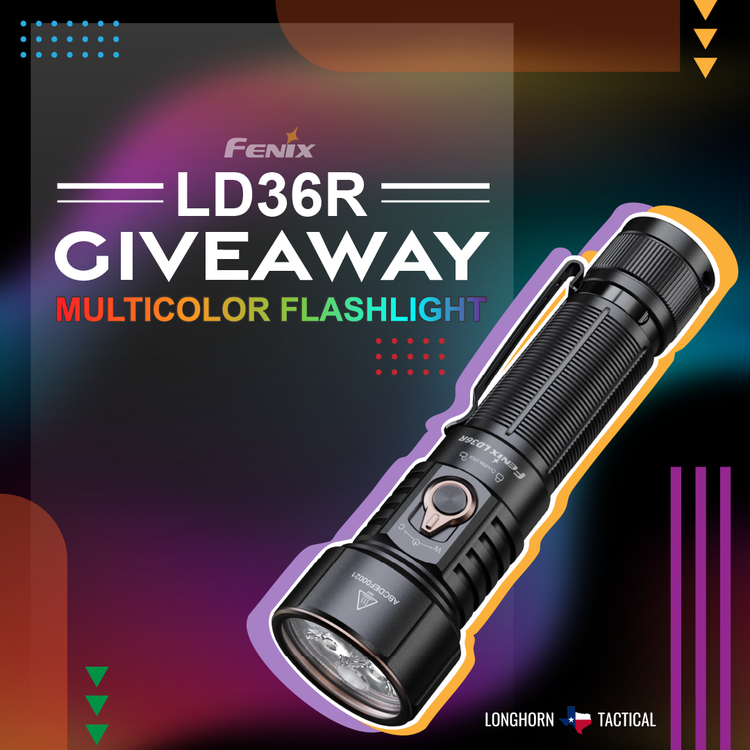 Enter to win the Fenix LD36R Flashlight! This light features a bright 3600 lumens max white light with 421 yards throw. It also features 6 color options to create ambiance and lighting effects. A multi-purpose light for your outdoor and creative endeavors.