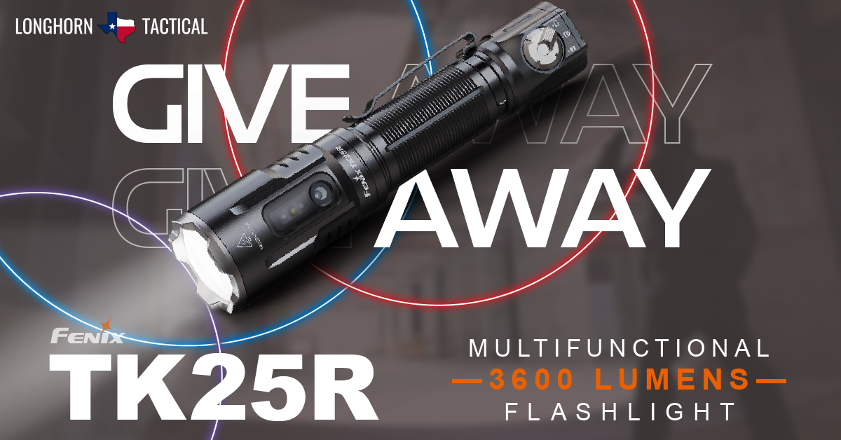 Enter for a chance to win the Fenix TK25R tactical flashlight. This duty light features a 3600 lumens max output with a unique side light – white, red, UV, and red/blue flash – making this a multifunctional light for any situations.