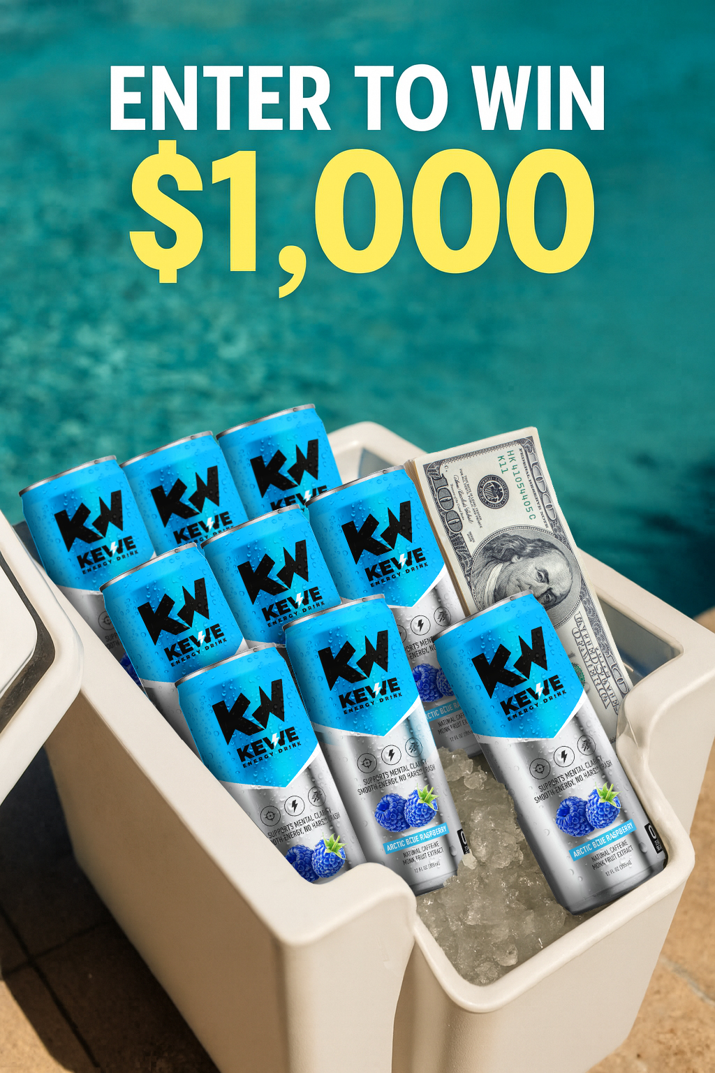 Grand Prize: A $1,000 in cash, tech, fitness, or travel package! Plus: 5 winners will score a 6-month supply of Kewe Energy™, and 20 more will get an exclusive merch pack!