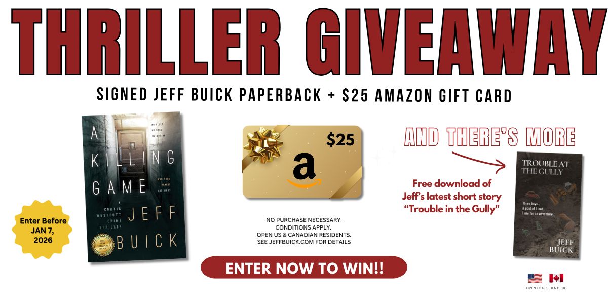 Enter for a chance to win a signed paperback by thriller author Jeff Buick and a $25 Amazon gift card.
